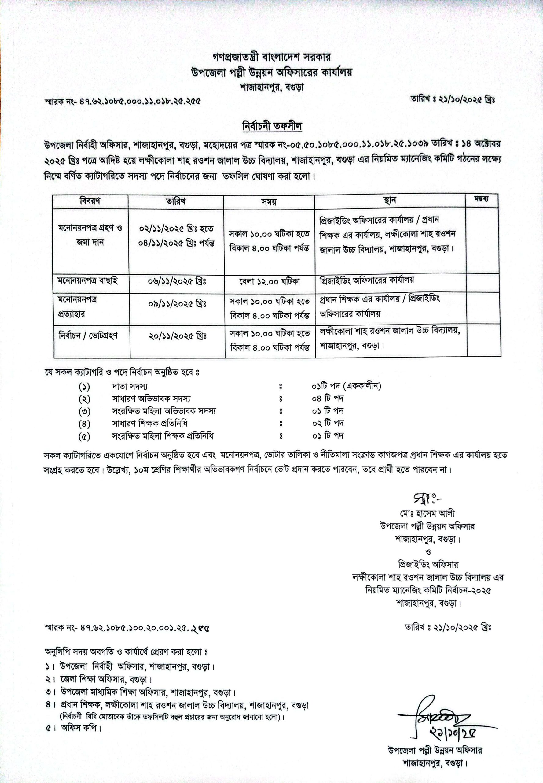 নিয়মিত ম্যানেজিং কমিটি গঠন এর লক্ষে নোটিশ-2025